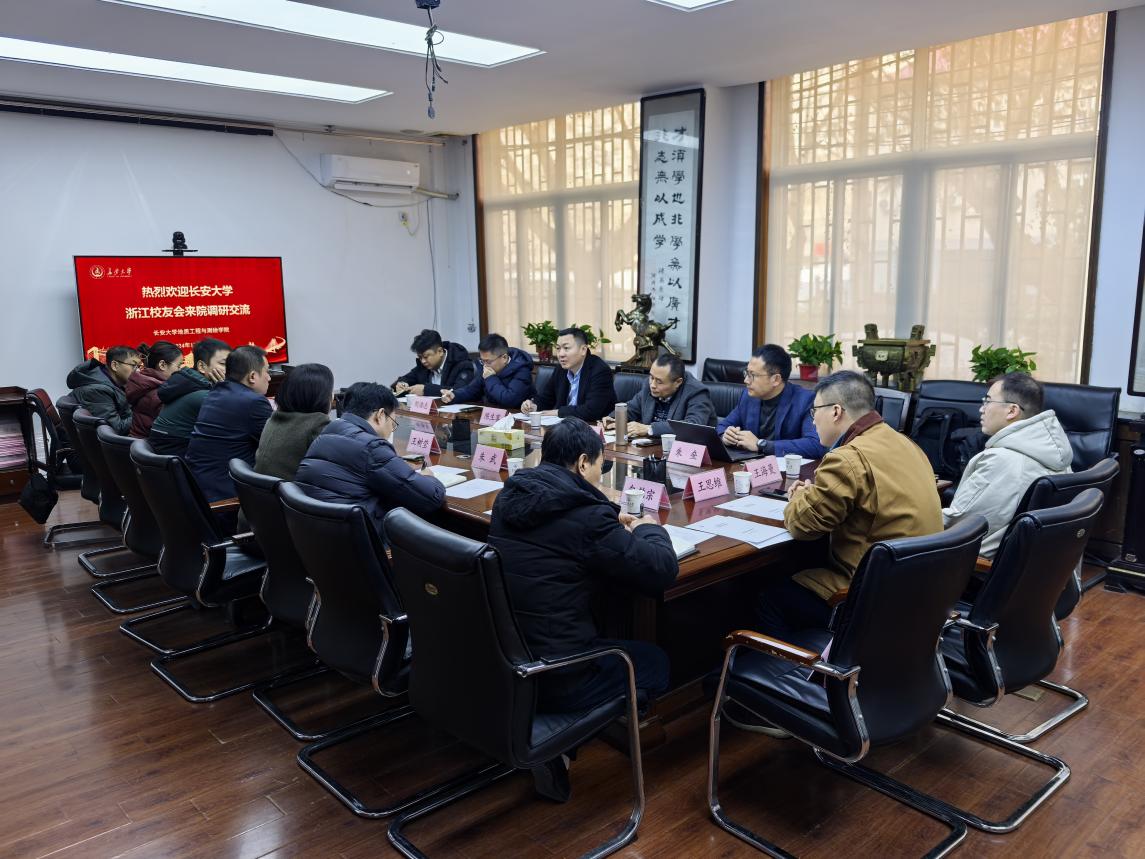 浙江校友会常务副会长陈生客、浙江校友会数智新基建分会会长杨国仁、常务副会长刘浩志、副会长朱垒一行到访我院进行调研与交流。学院党委书记王树莹、党委副书记、副院长欧阳韬、副院长朱武和科室负责人代表、各系教师代表参加调研交流会。